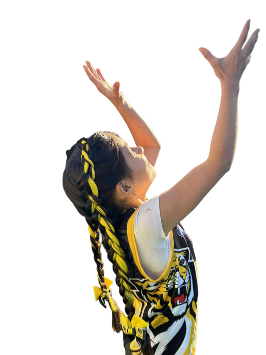 Sports Team Braids - Straight Pigtail Set with bow - Yellow & black