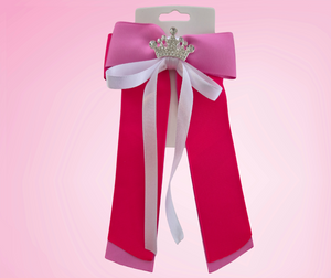 Inspired by the elegance of Sleeping Beauty herself, our Aurora Princess Bow is perfect for every little dreamer. Featuring layers of soft pink, vibrant hot pink, and crisp white ribbons, this bow captures the beauty of Aurora’s iconic gown. A sparkling rhinestone crown centerpiece adds the royal finishing touch fit for a true princess.