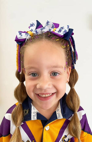 Footy Bow Korker Clip - Purple, Navy, White & Yellow Gold