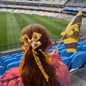 Footy Bow Korker Clip - Yellow Gold & Brown