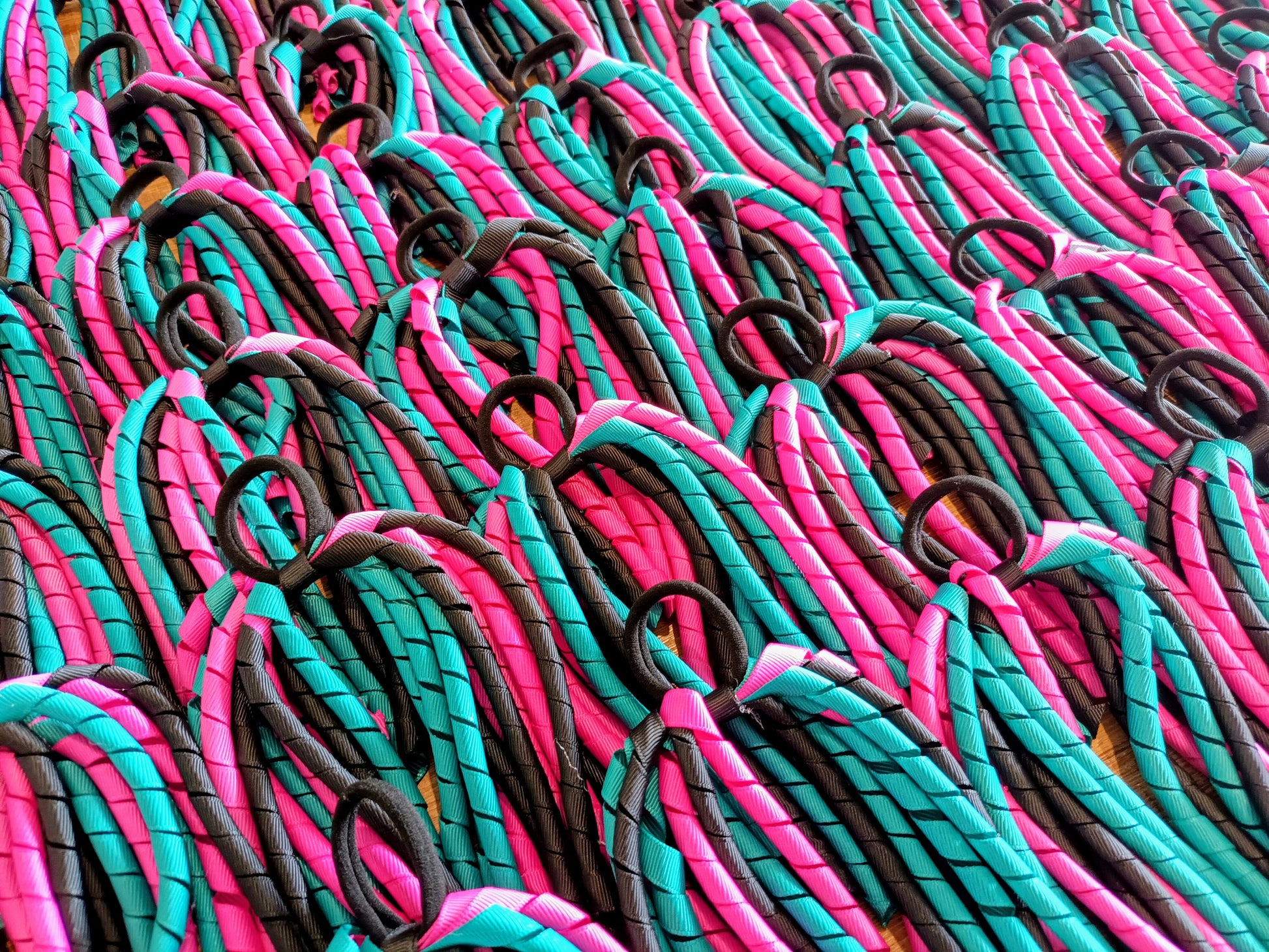 This beautiful ponytail length Korker on a hair tie is custom made to any colour combination you like.