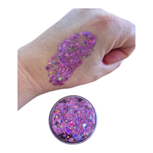 Our Pink Stardust Glitter Gel is a dreamy blend of rosy pinks, iridescent shimmer, and holographic sparkle that lights up any look. Made with a soothing 95% Aloe Vera Gel base, it’s safe for hair, face, and body—perfect for parties, dance concerts, festivals, birthdays, or everyday princess glam.
