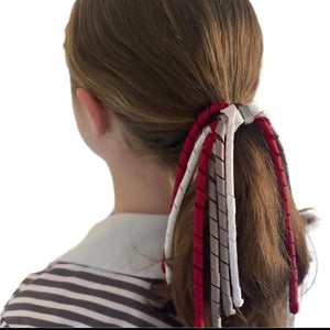 Add movement and personality to school hairstyles with our Ponytail Korker Hair Tie. Designed to coordinate seamlessly with school and sporting uniforms, this handmade accessory features cascading grosgrain ribbon korkers secured to a strong, comfortable elastic. The playful curls create a full, bouncy look while keeping hair neat and secure for everyday wear.